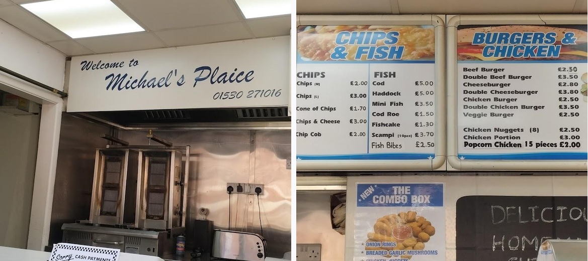 Welcome to Michael's Plaice, your premier destination for authentic fish and chips in Measham, Swadlincote. Nestled on High Street, we pride ourselves on serving up freshly-cooked cod, sausage, and delicious mushy peas in a casual, welcoming atmosphere. Our diverse menu offers quick bites perfect for lunch, with options for dine-in, takeaway, or delivery to suit your needs. Enjoy affordable prices, with meals ranging from £1 to £10, ideal for families looking for great value. With wheelchair-accessible seating and a children's menu, everyone is welcome at Michael's Plaice, where fresh, flavorful food meets exceptional service.The fish at Michael's Plaice earns rave reviews for its freshness and perfect doneness. Cod and haddock are particularly popular, often noted for their crispy skin and tender flakes. Generous portion sizes mean you get great value for your money, making it a favorite among families. Many customers appreciate the friendly service from the owner, who goes out of their way to ensure every meal meets expectations. The atmosphere remains casual, allowing for a laid-back experience whether dining in or taking away.